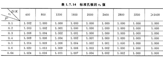 當ReD增大至3.2× 106以上時,流出系數及其不確定度不隨雷諾數而變化。為了估算流量可用表1.7.13所列流出系數和不確定度之值。