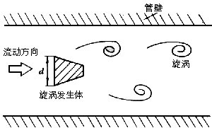 VSF是在流體中安放一根(或多根)非流線型阻流體(bluff body),流體在阻流體兩側交替地分離釋放出兩串規則的旋渦,在一定的流量范圍內旋渦分離頻率正比于管道內的平均流速,通過采用各種形式的檢測元件測出旋渦頻率就可以推算出流體的流量。