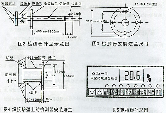氧量檢測(cè)器的安裝參照?qǐng)D3、圖4、進(jìn)行