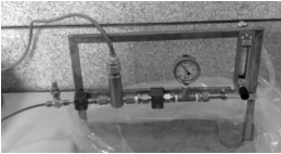 熱式質(zhì)量流量計(jì)在出廠前均經(jīng)過出廠標(biāo)定,以確保其性能滿足要求。此外,為了驗(yàn)證流量計(jì)在主泵第三級(jí)密封泄漏流量測(cè)量場(chǎng)合的適用性,搭建了模擬試驗(yàn)裝置如圖2所示。試驗(yàn)裝置由玻璃轉(zhuǎn)子流量計(jì)、壓力表、Swagelok計(jì)量閥和管道組成。流量計(jì)探頭安裝在壓力表和閥門之間,測(cè)量信號(hào)通過電纜送至流量計(jì)的數(shù)據(jù)處理單元,并最終在顯示儀上進(jìn)行顯示。計(jì)量閥用于調(diào)節(jié)試驗(yàn)裝置的流量,玻璃轉(zhuǎn)子流量計(jì)測(cè)得的結(jié)果作為熱式質(zhì)量流量計(jì)測(cè)量結(jié)果的參考,壓力表用于試驗(yàn)裝置試驗(yàn)過程壓力的測(cè)量。