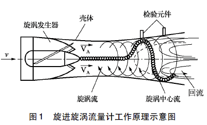 當流體通過螺旋形的旋渦發(fā)生體后,流體被迫繞旋渦發(fā)生體中心劇烈地旋轉,形成旋渦流。旋渦流加速,沿流動方向經(jīng)縮段、流動強度增強。當旋渦流進入擴散段后,在導流體回流的作用下,該旋渦產(chǎn)生二次旋轉,二次旋渦的頻率與流量與正比。當流量計設計得當時,在很寬的流量范圍內(nèi),旋渦頻率與流量成線性關系。該頻率由壓電傳感器檢測,通過流量積算儀進行運算和處理。顯示流量的瞬間流量和累積總量,并變送輸出對應的4-20mA電流信號。